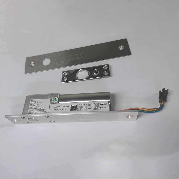 电插锁带延时控制,就是锁体上有拨码开关,可以设置关门的延时时间。通常可以设置为0秒,3秒,6秒,9秒。每个品牌的锁分几档延时略有不同。