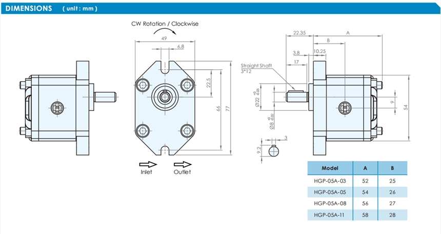 | 型号:HGP05A | 作用原理:齿轮泵 |