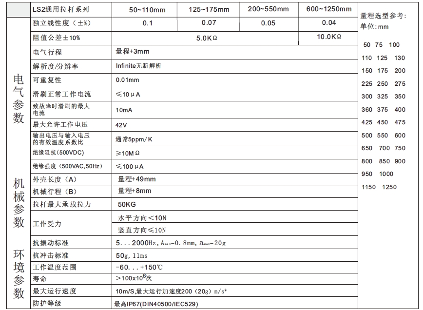 一、LS2拉杆式直线位移传感器产品简介: