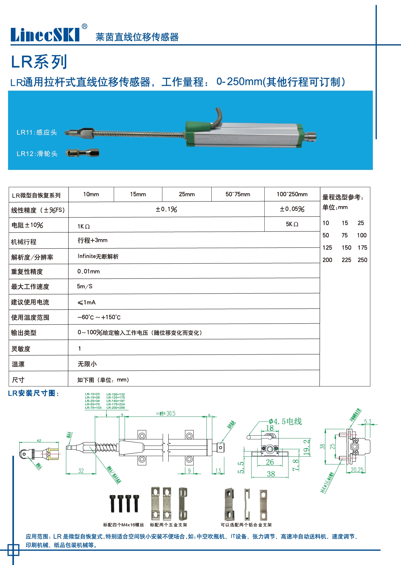 | 型号:LR11LR12LR2-5075100125150175200225275275300400 | 用途类型:直线位移传感器直接 |