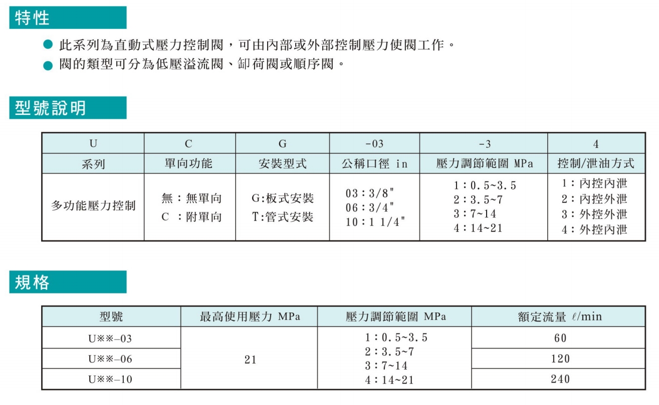 | 型号:UGUTUCGUCT | 功能类型:压力控制阀 |