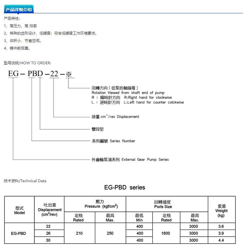 | 型号:EG-PBD | 作用原理:齿轮泵 |
