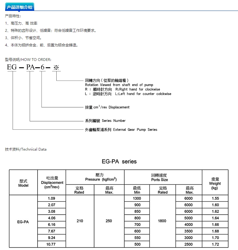 | 型号:EG-PA | 作用原理:齿轮泵 |