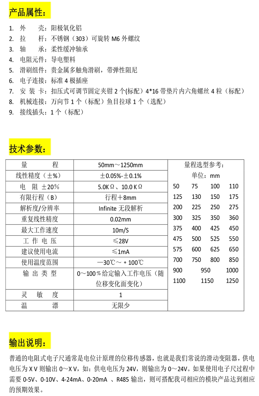 | 工作原理:电阻式 | 输出信号:模拟型 |