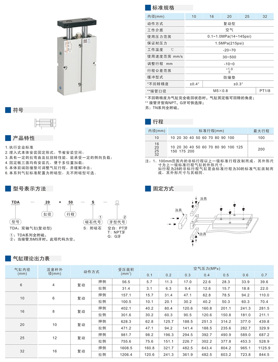 CYLINDER 双轴气缸TDA32X10