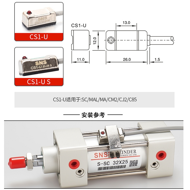 气缸配套磁性开关 CS1-G CS1-M CS1-J CS1-S CS1-U CS1-F