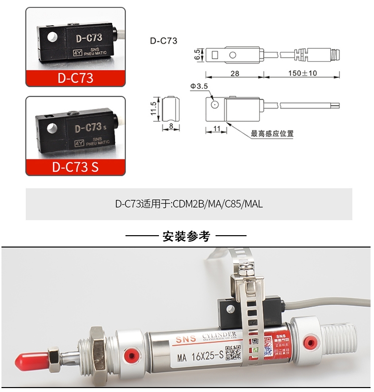 气缸配套磁性开关 D-A93 D-Z73 D-C73 D-A73 D-A54