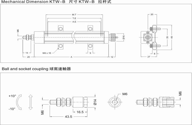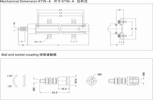 | KTW-A 拉杆系列 | 单位/量程 | 50 | 75 | 100 | 125 | 150 | 175 | 200 | 250 | 300 | 400 | |||