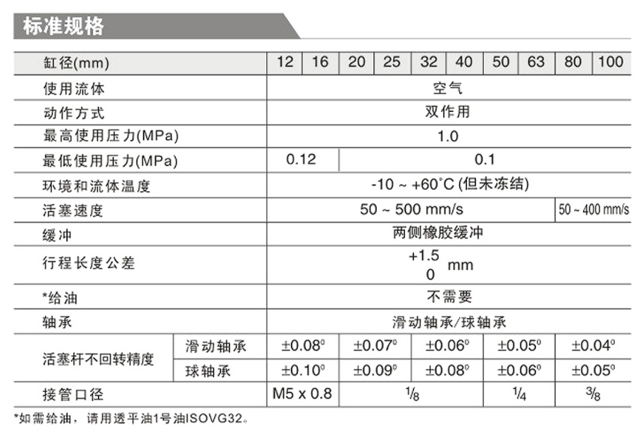 气缸行程的选定是将超过工作移动距离的最小标准行程作为行程确定的依据,特殊行程仍可接受客户预定。
