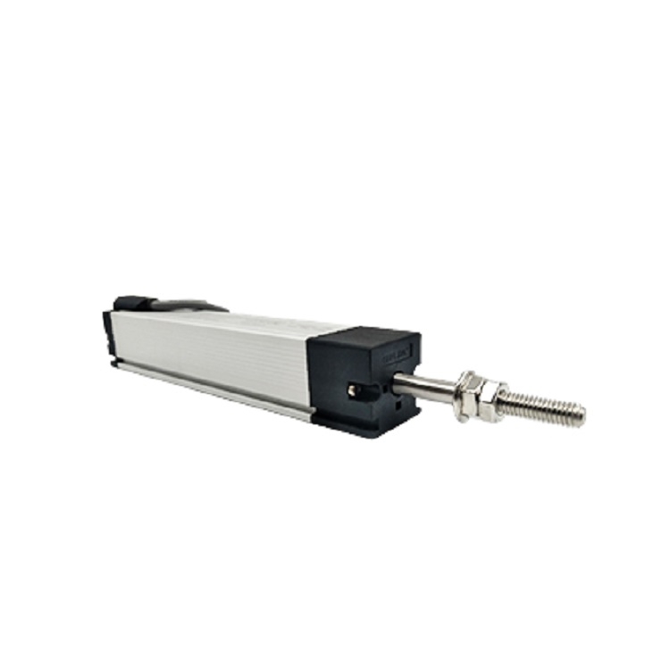 KPM18小型绞接式位移传感器外壳表面阳极处理,防腐蚀;内置碳膜线板测量单元,寿命长,铝管直径18mm,是两端固定安装的微型绞接运动方式,适合于较小机械行程且有摆动的位置检测.