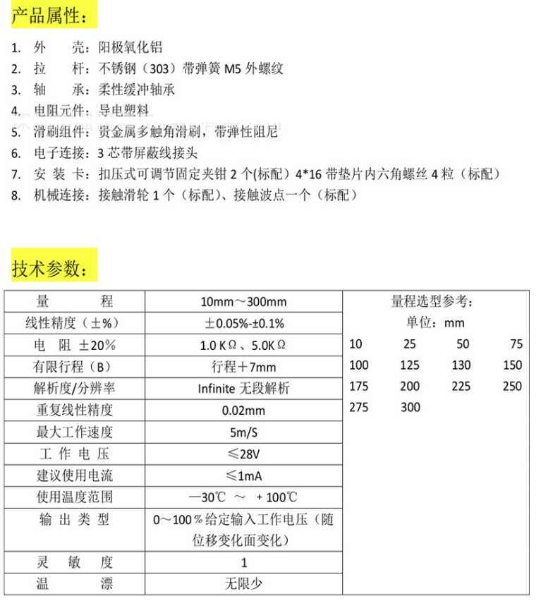 | 工作原理:电阻式 | 输出信号:模拟型 |