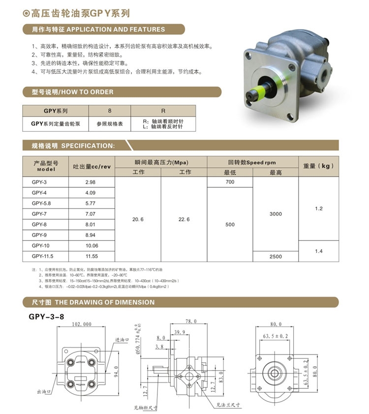 江苏供应岛津型齿轮泵GPY-11.5R做工精良