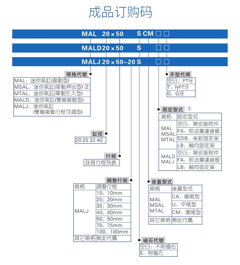 AIRTAC CYLINDER圆型迷你气缸 MAL40X100CA